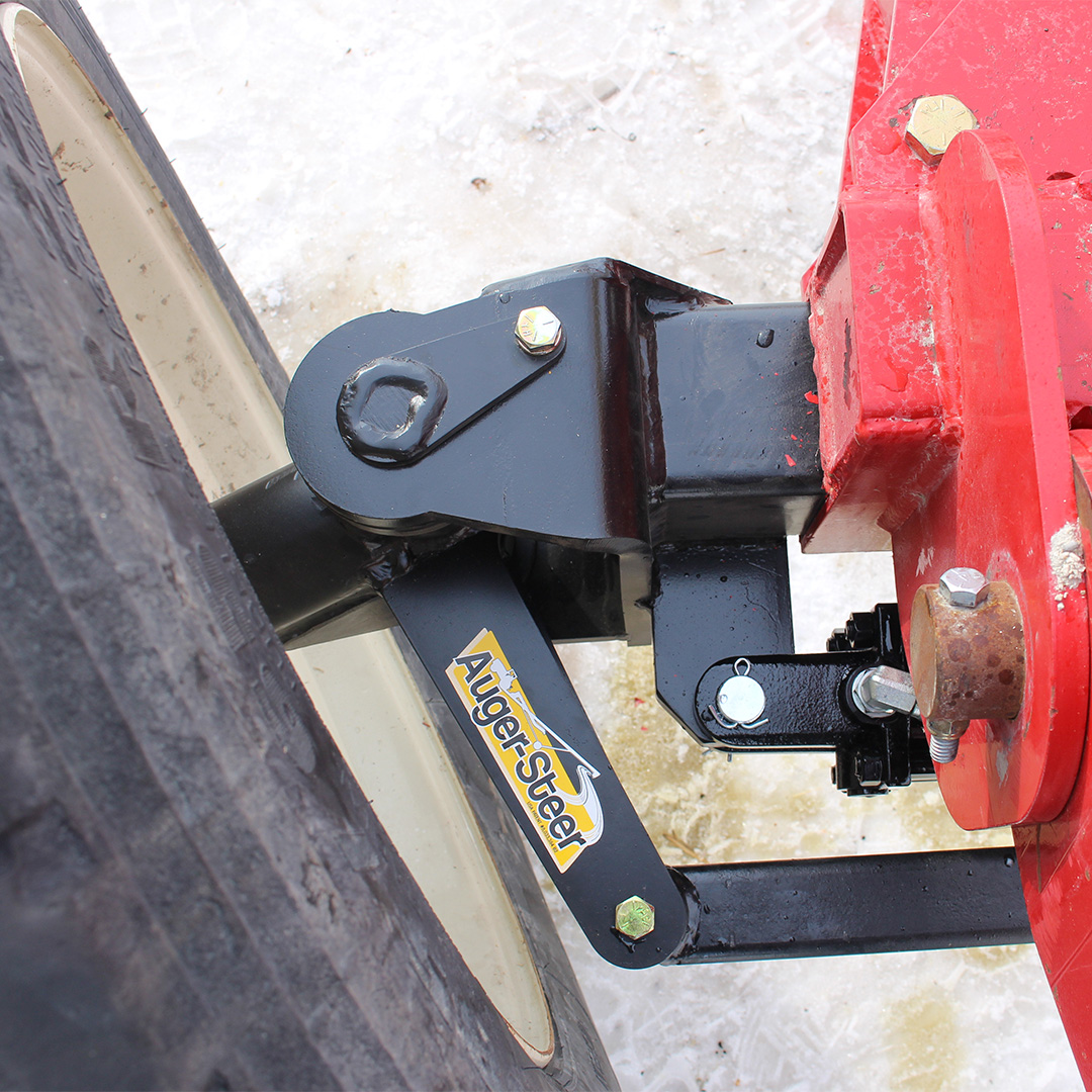 This is a new product that drastically improves the maneuverability of pull-type augers and conveyors. Not only can Auger-Steer aid in getting your auger into those tight spots or around tight corners, auger-Steer also enables the auger spout to sway left and right to make lining up the bin fill hole easier.